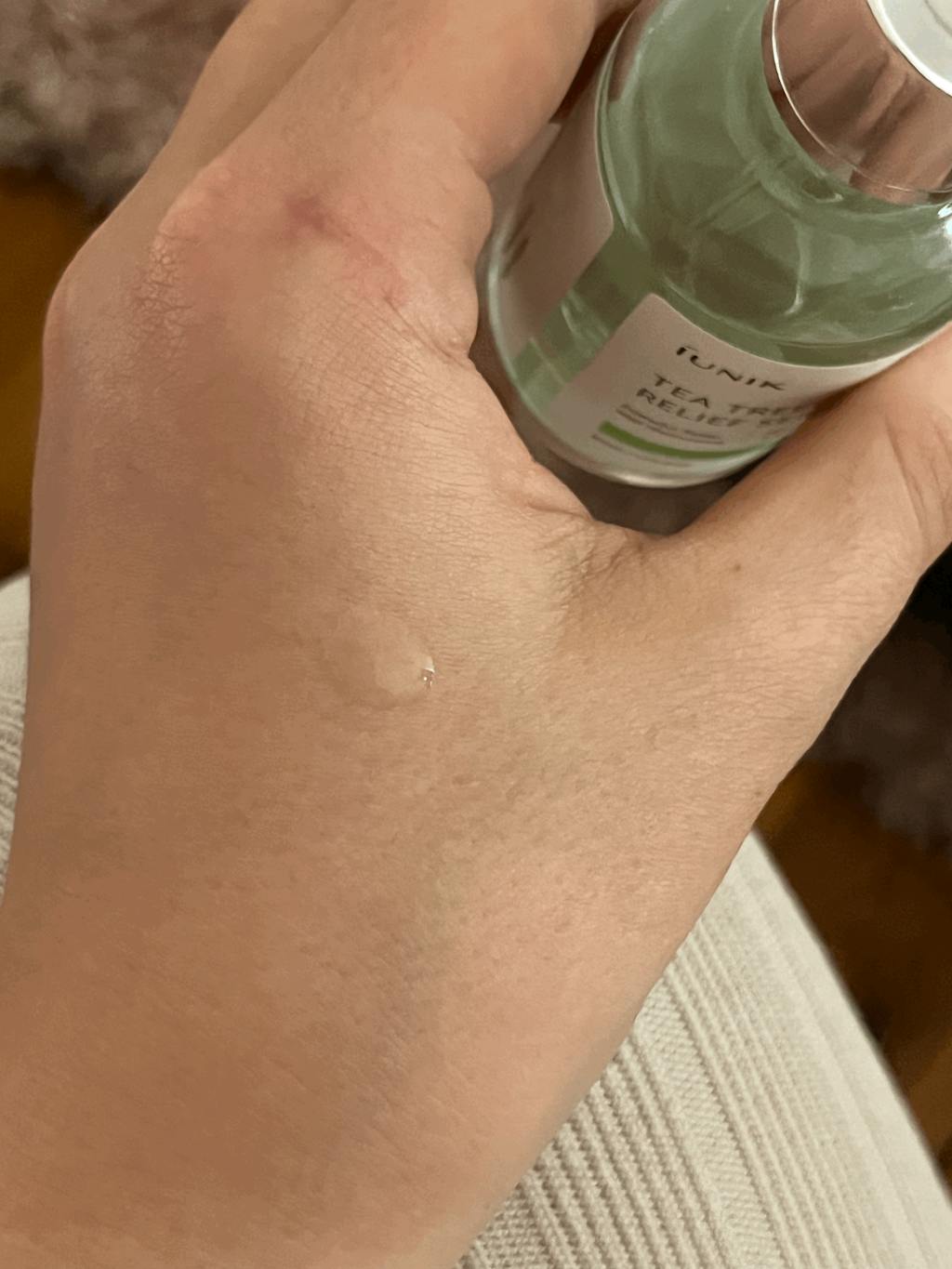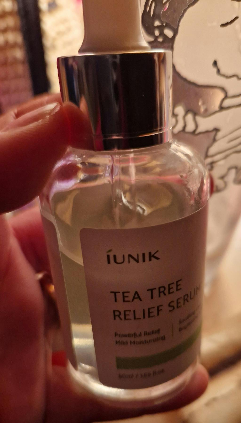 Le Tea Tree Relief Serum iUNIK est un sérum apaisant formulé pour les peaux déshydratées et sensibles. Il est composé à 67% d'eau de feuilles d'arbre à thé connue pour ses bienfaits anti-inflammatoires et antimicrobiens et sa capacité à guérir les peaux à problèmes, et à 19,7% d'extrait de Centella Asiatica pour apaiser les rougeurs ou les peaux irritées. Le niacinamide et l'adénosine sont présents pour renforcer les effets éclaircissants et antirides de ce sérum.